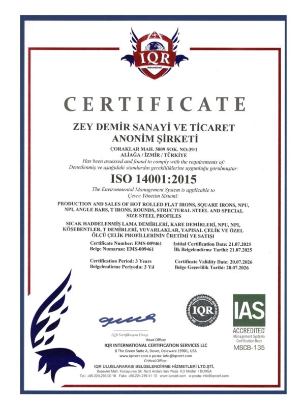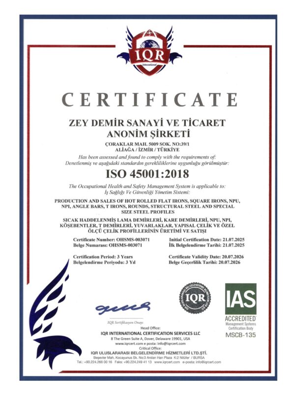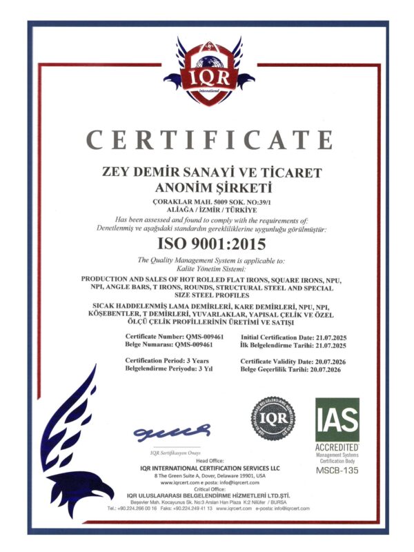 Zey Demir olarak demir çelik sektöründe faaliyet gösteren firmamız, tüm üretim ve hizmet süreçlerini uluslararası kalite standartlarına uygun şekilde yürütmektedir.