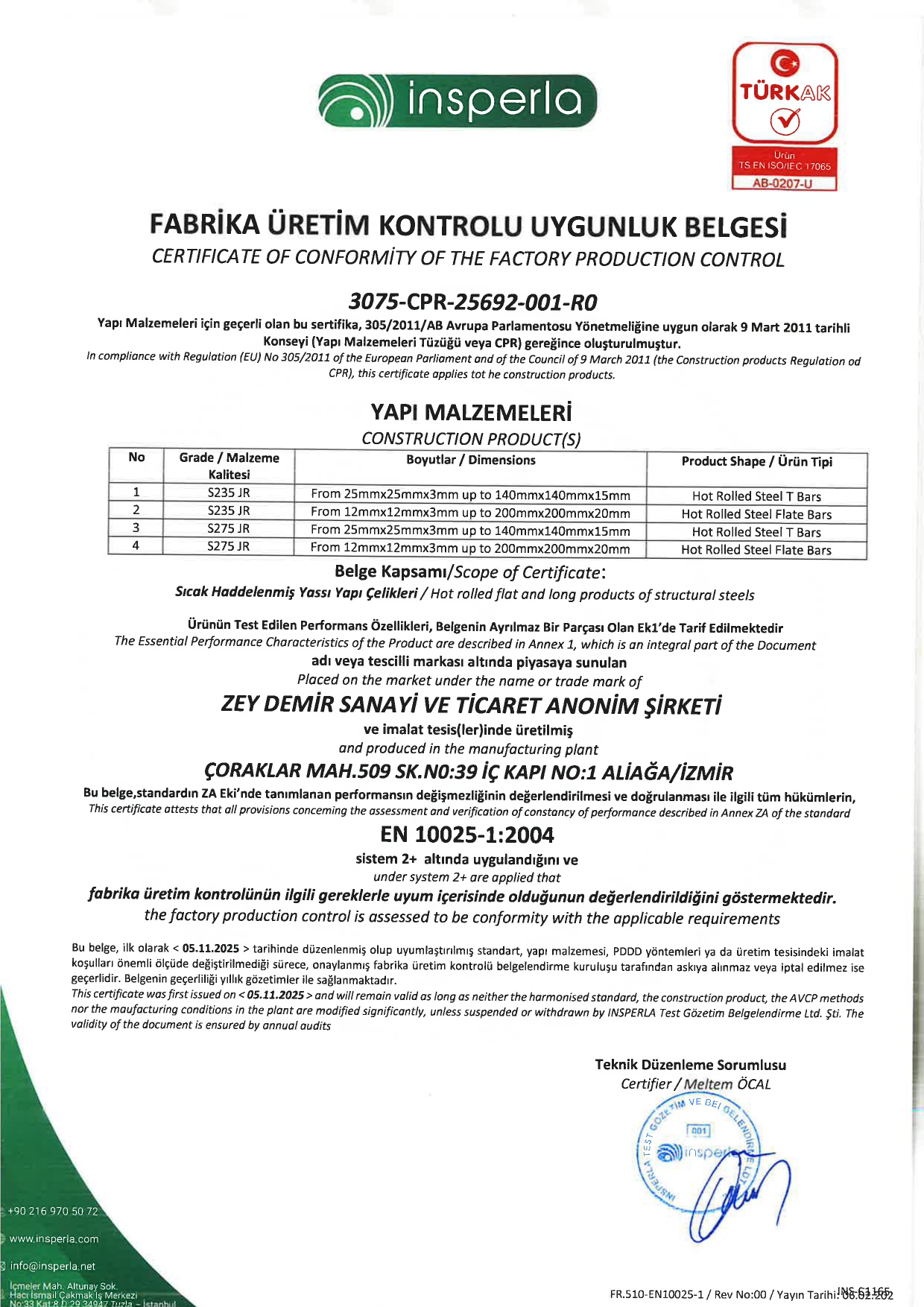 Kurumsal yapımızı güçlendiren ve müşterilerimize güven veren bu yaklaşımımız, ISO 9001:2015, ISO 14001:2015 ve ISO 45001:2018 sertifikalarımızla resmi olarak belgelendirilmiştir.